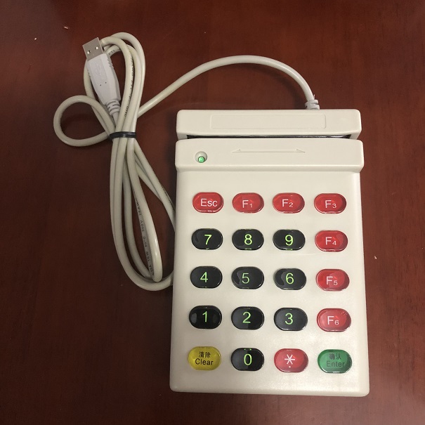 明华诚信MHCX-752KU刷卡密码键盘该款划卡(密码)键盘是北京明华诚信科技有限公司专业推出的一款集密码键盘和磁条卡读写器于一体的产品,并且可分为水晶按键和机械按键两种类型。功能稳定,使用方便。可同时阅读2磁道。该产品外形更美观、结构更合理、功能更强大、用户使用更加方便。兼容性好:能提供AMC712、IBM4717和IBM4777/ISC全兼容的磁条读写器,品种齐全。在不改变用户的应用程序的情况下,能提供与客户已安装的任意磁条读写器的兼容机型与宿主机良好配合;可与任一品种终端连接使用,包括实达、牡丹、长城、国光、慧智、海威、联想、紫金、齐通、聚星等终端。